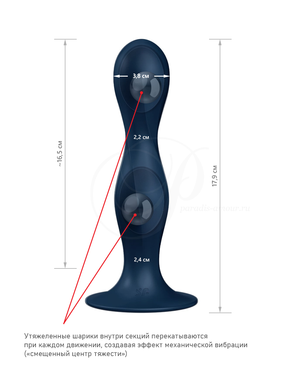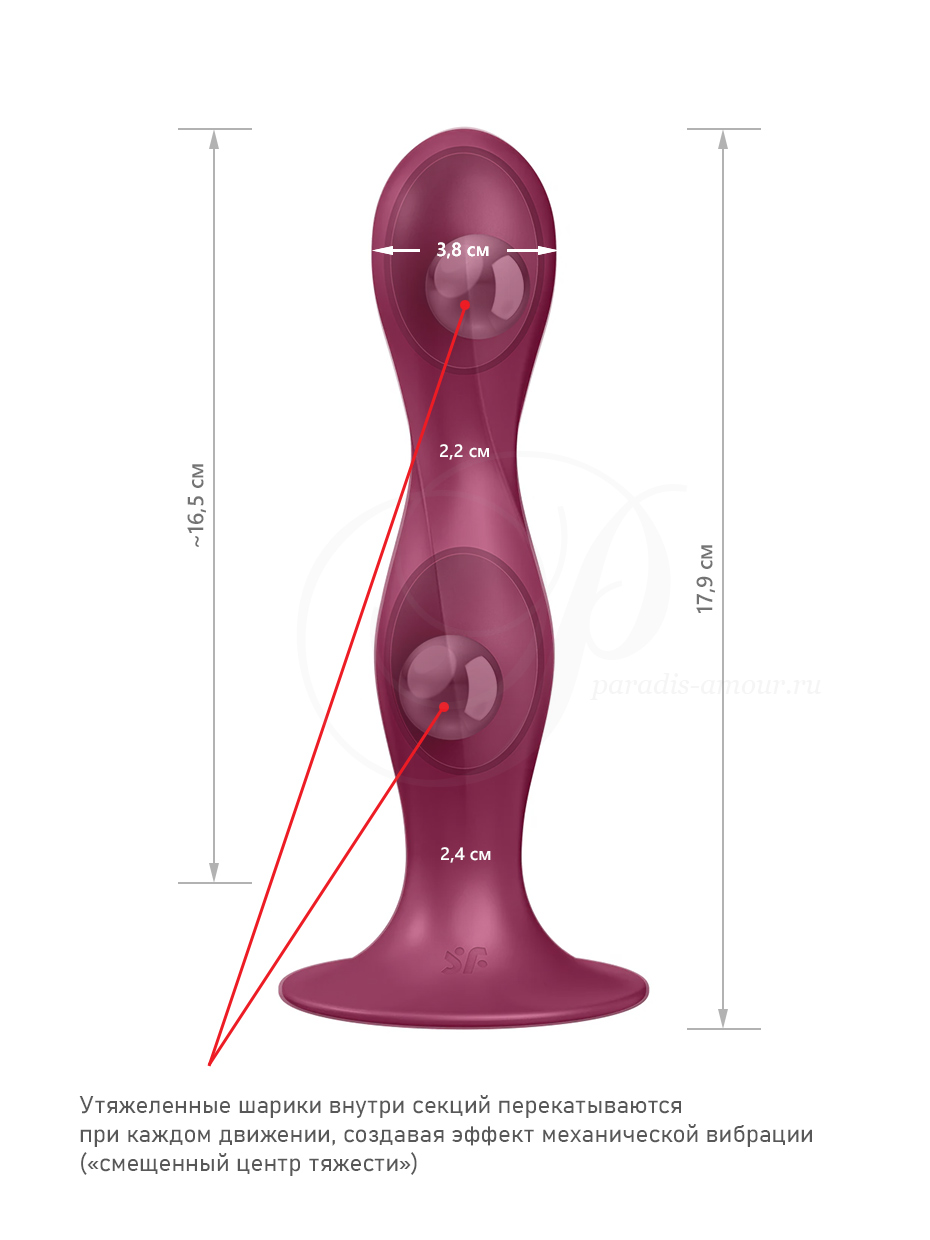- Утяжеленный шарик внутри каждой из секций создает эффект механической вибрации.