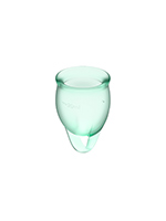 - В комплект входят две многоразовых менструальных чаши разного объема (на 15 мл и на 20 мл) — для выделений разной интенсивности.