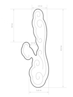 - Полная длина 22 см, длина активной части (в зависимости от положения гибкого отростка) ~9-11 см, ширина активной части 2,9-3,9 см, толщина вибратора 2,7 см.