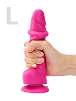 - Классическая реалистичная форма с ярко‑выраженной головкой, рельефными венами и мошонкой.