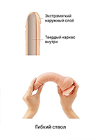 - Революционная технология двойной плотности Sliding Skin («подвижная кожа»): твердый и упругий внутренний сердечник ствола покрыт толстым слоем нежнейшего силикона. При проникновении или стимуляции внешний слой смещается по стволу, обеспечивая непередаваемый ультрареалистичный эффект.