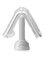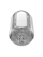 - При нажатии пальцами на специальные силиконовые подушечки (полосы с точками) канал сужается, делая обхват более плотным и выталкивая воздух через односторонний клапан в верхней части → внутри мастурбатора создается повышенное давление («вакуум»).