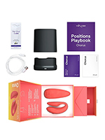 Пульт управления, зарядная база/футляр для хранения, кабель USB, пробник лубриканта We‑Vibe Lube by Pjur 2 мл.