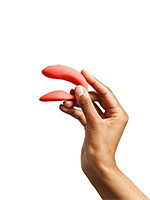 - Управлять вибратором можно как с помощью кнопки на поверхности, так и дистанционно — c помощью полностью переработанного, оснащенного датчиками сжатия пульта управления (на расстоянии до 3 метров) или с помощью бесплатного приложения We-Connect (независимо от расстояния).