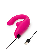 Сдвоенная кнопка «+/–» отвечает за вакуумную стимуляцию, отдельная кнопка «❖» переключает режимы вибрации. - Работает от встроенного аккумулятора (Li‑Ion 160 мА·ч), заряжается от любого USB-порта (компьютера, ноутбука, сетевого адаптера) с помощью входящего в комплект кабеля. 1,5 часа подзарядки обеспечивают до 1,5 часов непрерывного использования.