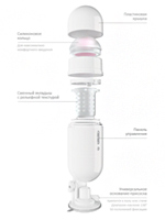 Мощный робот-мастурбатор Zini dib — настоящая машина по доставлению мужского удовольствия. Покрытый богатым рельефом вкладыш из нежнейшего материала буквально обволакивает головку члена и, вращаясь, обеспечивает мягкую стимуляцию. 5 скоростей и 10 видов вращения дают в сумме 50 (!) режимов работы на любой вкус и настроение. Надежное крепление-присоска с регулировкой наклона до 138° позволяет предаваться удовольствию в режиме hands‑free.